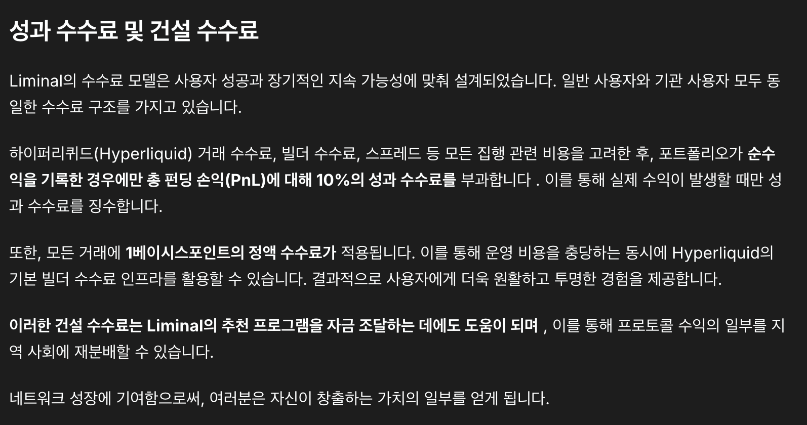 수수료의 경우 순수익을 기록한 경우 총 펀딩 Pnl에 대한 10% 수수료를 가져갑니다.