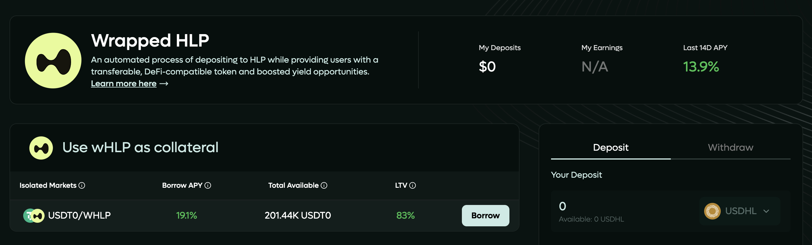 자체적으로 운영하고 있는 웹된 HLP입니다. 이율이 조금 아쉽지만 hyperlend 채굴 시 스테이블 중에서는 다른 일반 자산을 Supply 하는 것보다는 좋은 선택지로 보입니다.