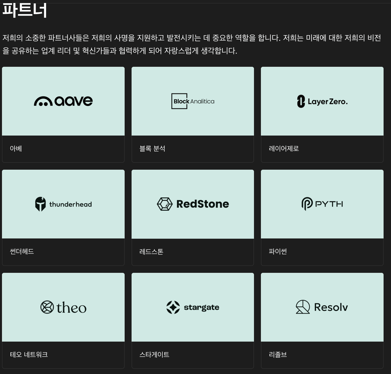 파트너 사로 브리지 계열, 그리고 최근 핫한 Theo등이 보입니다. EVM 계열 자산도 브릿지 해서 많이 넘길 수 있을 것 같네요.