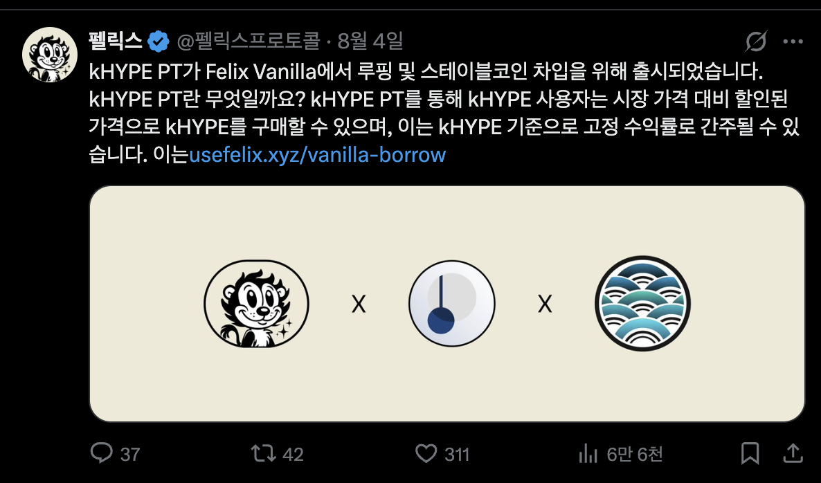 오늘도 하이퍼 EVM DEfi 프로젝트인 펠릭스에 대해 공부를 해보도록 하겠습니다. 일단 지금 하고 있는 하이퍼 EVM 예치작을 다 정리 후 유튜브로 정리를 하려고 합니다. 그렇기에 너무 답하지는 않지만 그래도 알짜배기는 챙기는 형식으로 공부를 계속해서 해보도록 하겠습니다.