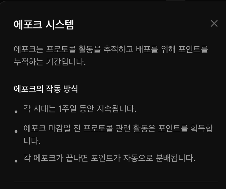 포인트는 1주일에 한번씩 배포되며 에포크는 현재 19입니다.
