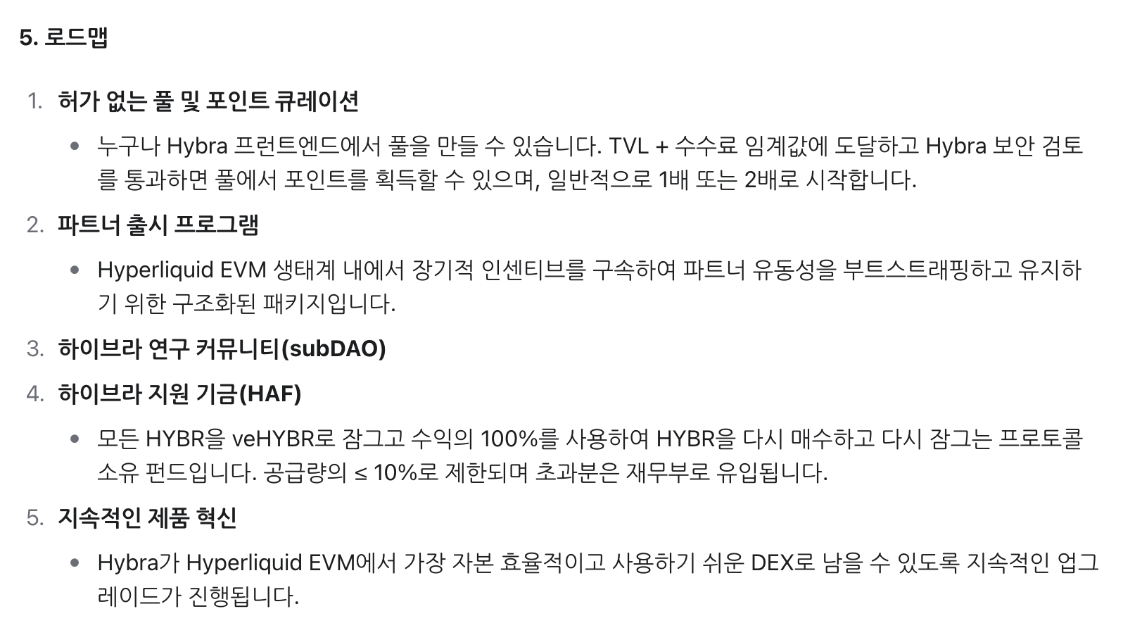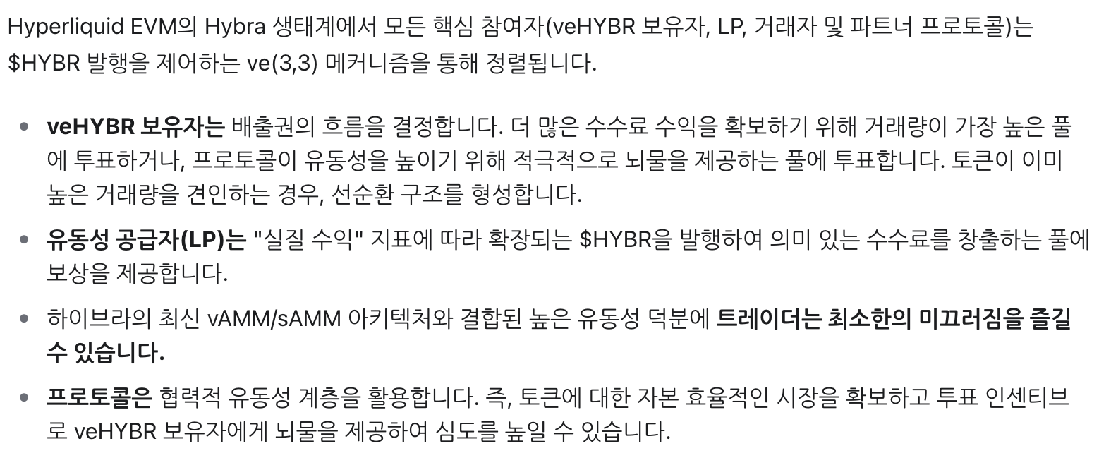 하이퍼 EVM 생태계에서 hybr라는 거버넌스 코인을 발행해서 다양한 인프라 확장을 빌트인 하고 있습니다.
