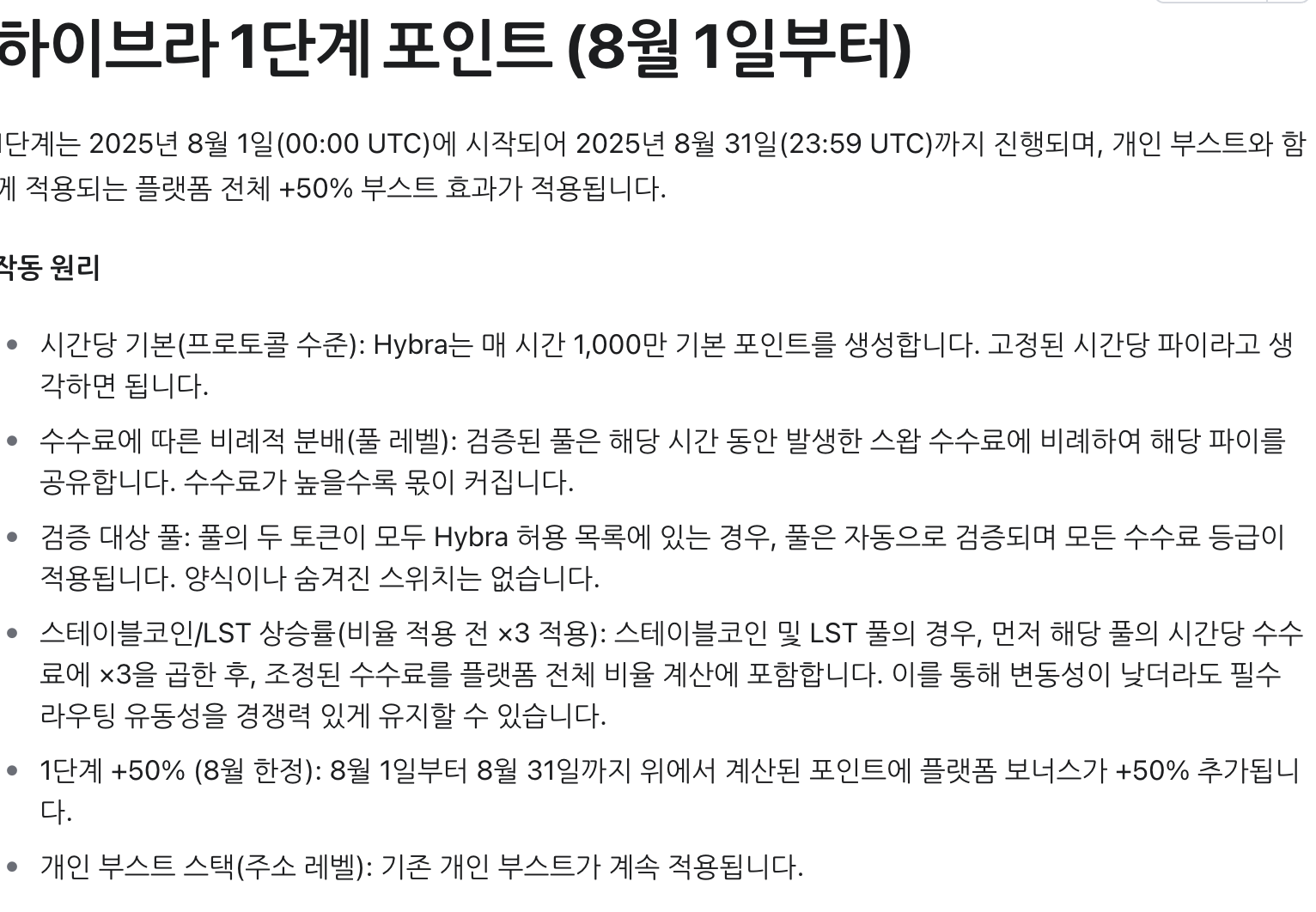 하이브라는 포인트 제도를 운영하고 있는데 시즌0은 끝났고 시즌1이 8월 1일부터 진행 중입니다. 포인트는 상당히 많이 뿌리고 있습니다. 부스팅도 있고 개인 부스팅도 있습니다.