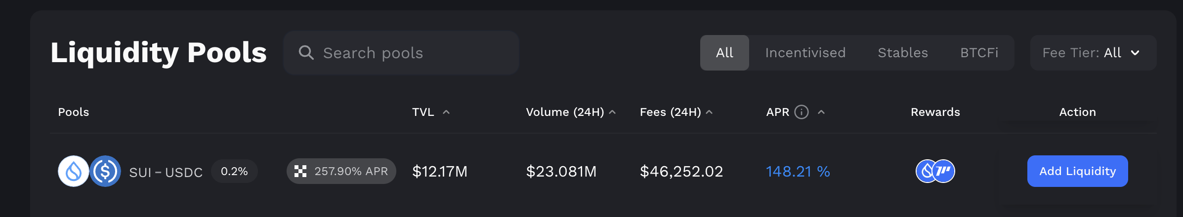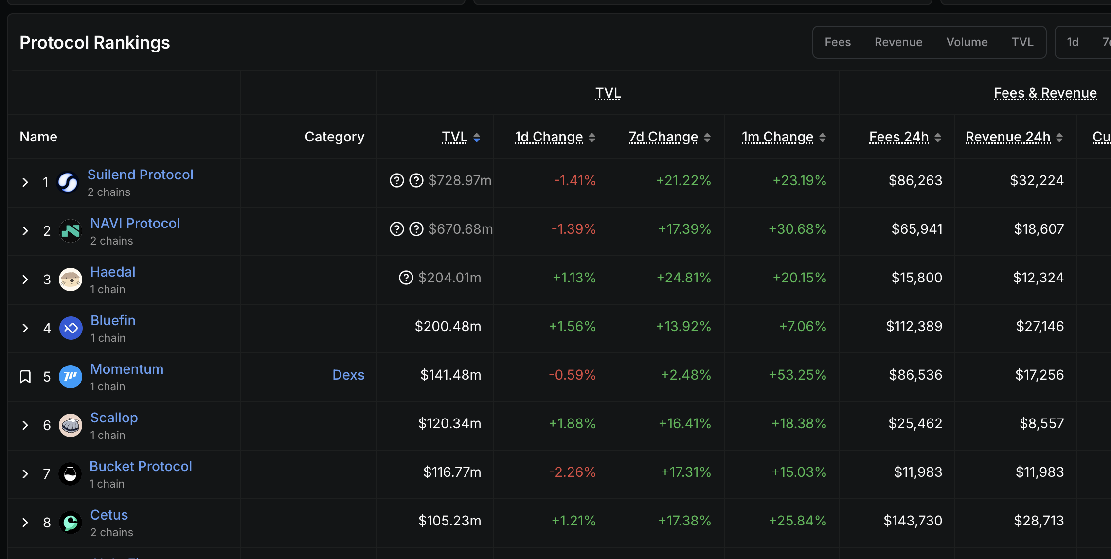현재 SUI 체인에서 TVL로 5위 정도하고 있습니다.