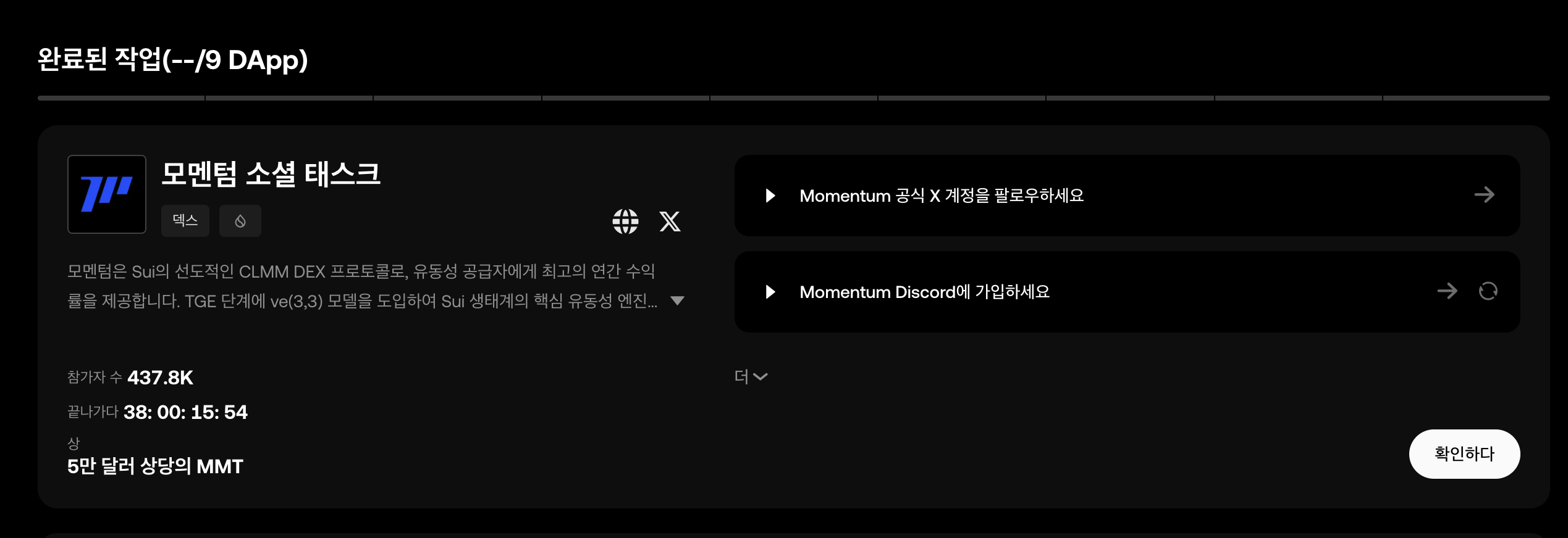 오늘은 Sui 체인의 DEX인 모멘텀에 대한 에어드랍 작업을 해보도록 하겠습니다.