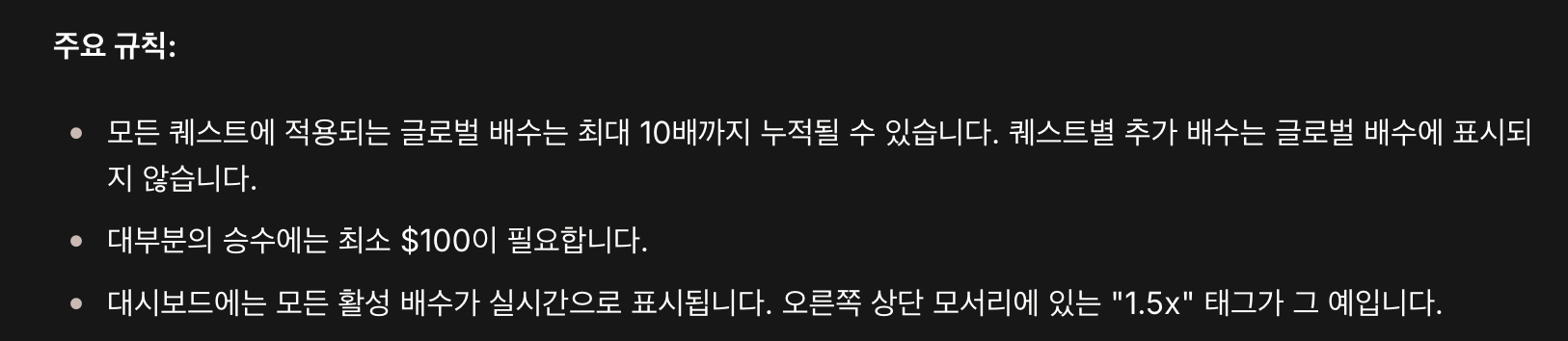 배수는 최대 10배, 조건은 최소 100달러 대시보드에 활성화된다고 하네요. 다계정을 하려면 최소 100달러로 해야 합니다.