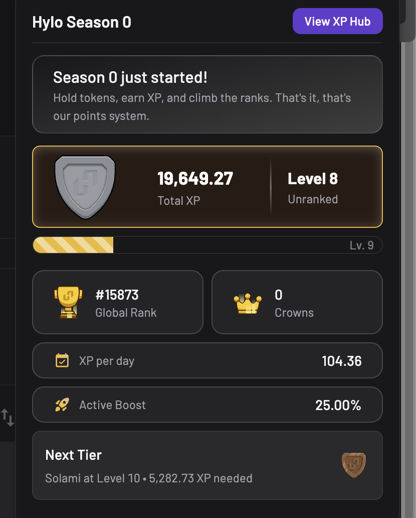 하일로는 1년 정도 넘은것 같아요. 빌딩 한 지 오래된 프로젝트이고 약간 거북이처럼 일을 하기에 조금 아쉬운 점이 많습니다. 그래도 지금 같은 시기라면 혹시? 하는 마음에 확인을 해봤는데 여전하더군요. 하일로는 포인트작으로 XP를 기반으로 합니다. 현재 시즌0이고, 이전에 프라이빗베타를 진행했었는데, 저는 프라이빗베타 조금 참여하고 까먹오 있었는데 아직도 시즌0이어서 놀랐습니다.