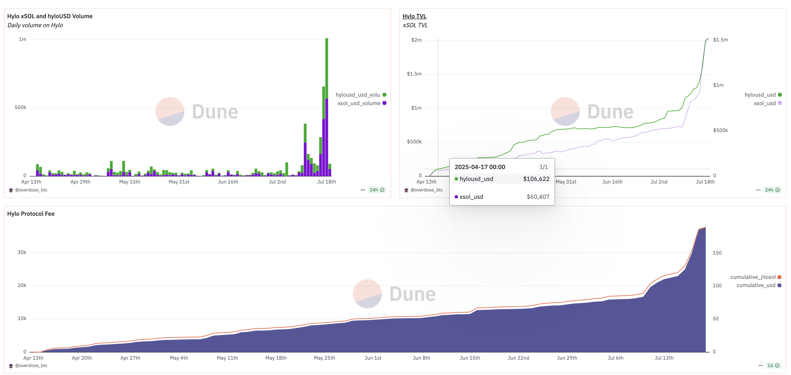TVL은 2M 밖에 되지 않습니다. 휴마도 처음에는 그랬는데 프로젝트가 열일을 하다 보니 늘어나게 되었고 하일로도 만약 괜찮다면 TVL은 금방 오르지 않을까 싶습니다. Xsol이라는 솔라나 리스테이킹도 제공하지만 스테이블도 있기에 선택지는 나쁘지 않은 것 같습니다.