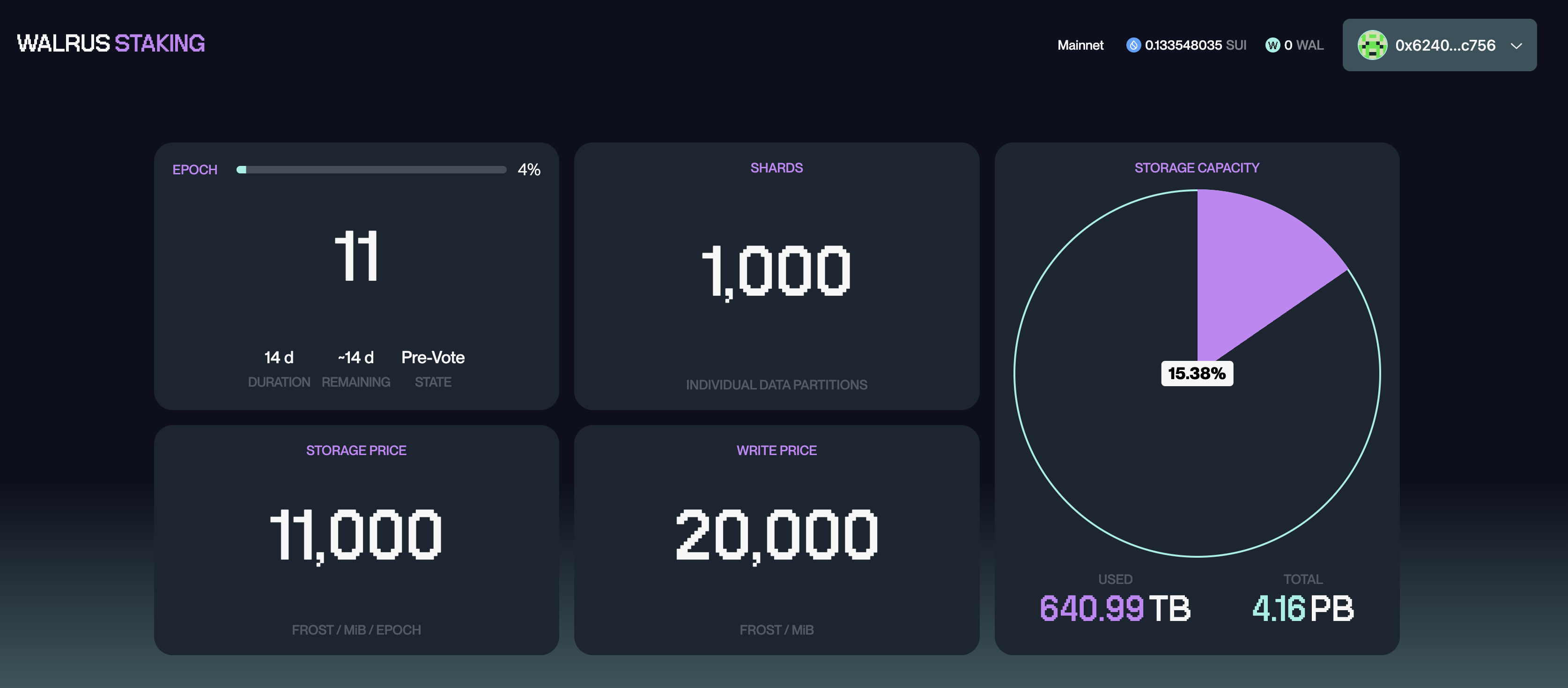 바로 Walrus Staking입니다. 현재 에포크 11로 2주마다 진행을 하고 있습니다.